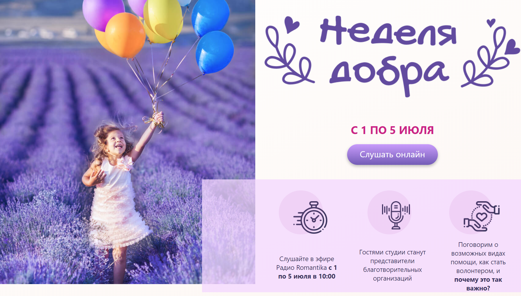 Лето - то самое время, когда хочется обнять весь мир и изменить собственную жизнь! Радио Romantika объявляет запуск нового социального проекта «Неделя Добра».